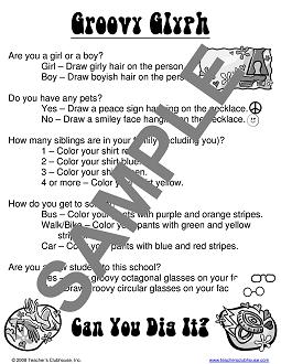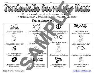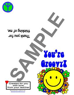 peace signs, flowers, smileys, platform shoes, and groovy kids.